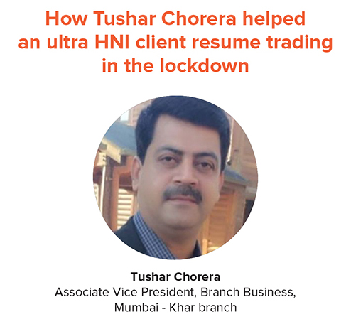 In the COVID-19 lockdown, many of our heroic stories are about Sherus going out of their way to help customers in these difficult times. Tushar Chorera, AVP Branch Business, Mumbai - Khar branch recently helped an ultra high net worth customer take advantage of the current volatile market conditions.