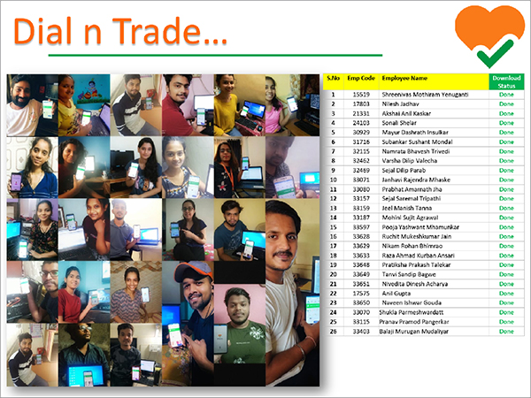 They travelled to dadar ruby office during initial days of lockdown to facilitate smooth trading for clients and branch trades
